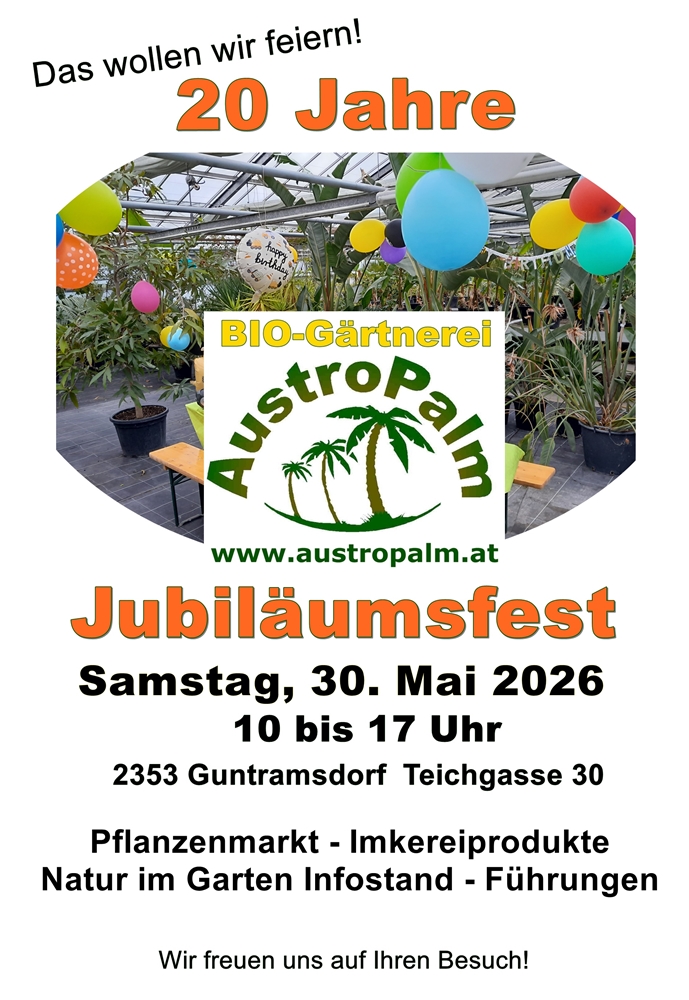 Wir feiern 20 Jahre AustroPalm mit unserem Jubiläumsfest am 30. Mai 2026